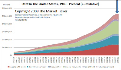 Karl Denninger at Market Ticker has a nice chart of total lending based on Federal Reserve Z.1 Flow of Funds data.